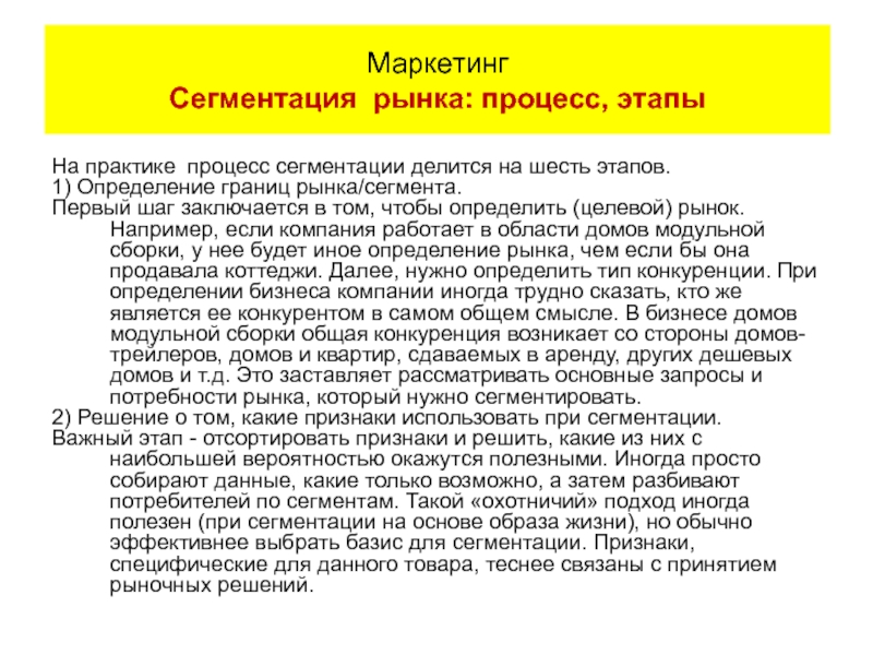Маркетинг Сегментация рынка: процесс, этапы