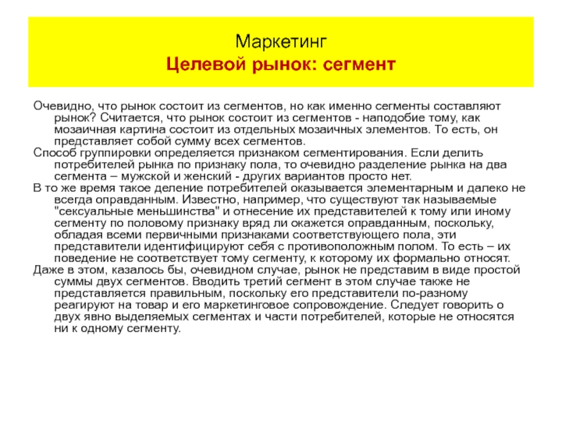 Слайд 7Очевидно, что рынок состоит из сегментов, но как именно сегменты