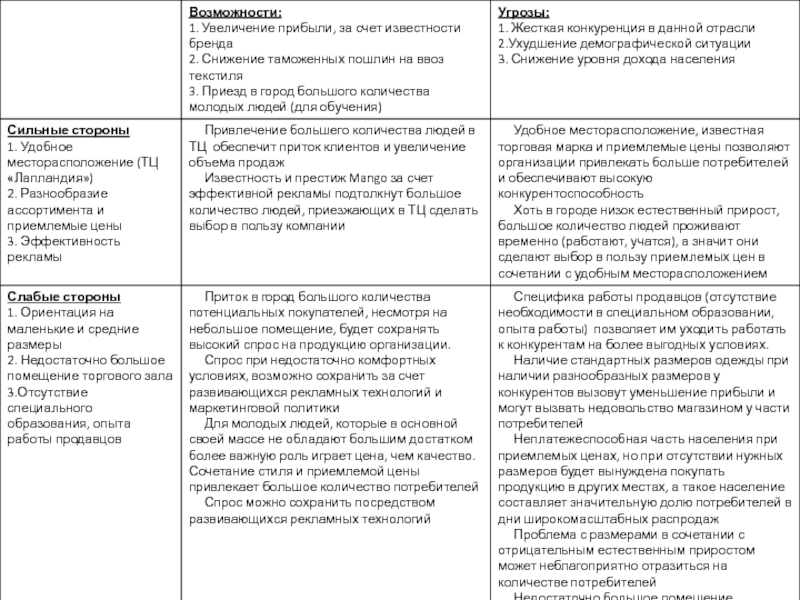 Конкурентами Mango являются любые магазины продовольственного и промышленного назначения, так