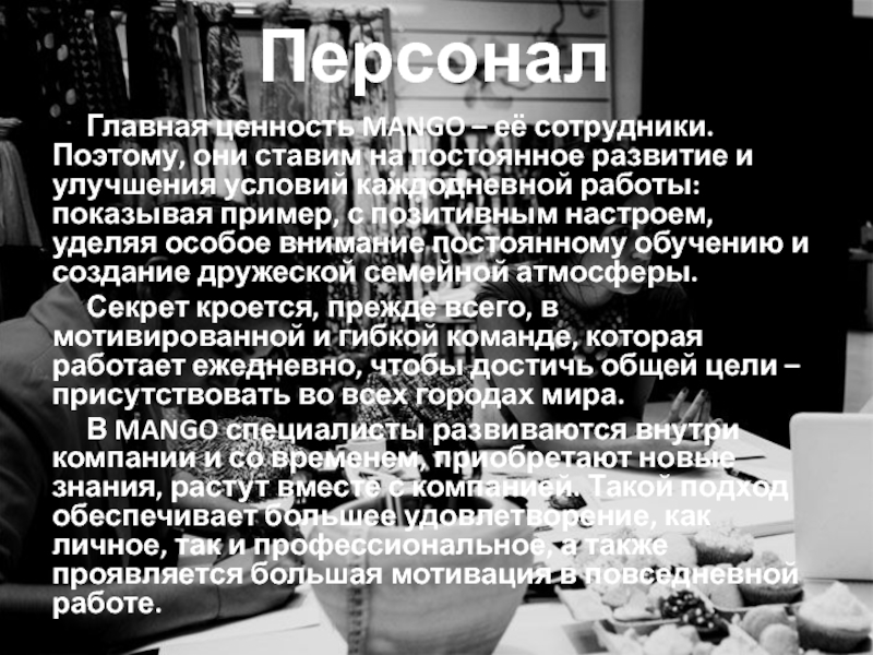 Главная ценность MANGO – её сотрудники. Поэтому, они ставим на