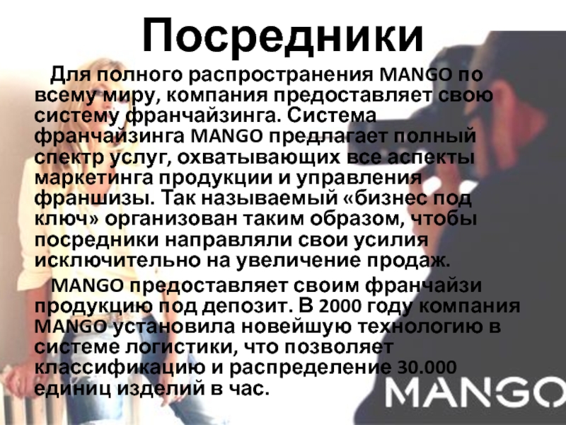 систему франчайзинга. Система франчайзинга MANGO предлагает полный спектр услуг, охватывающих