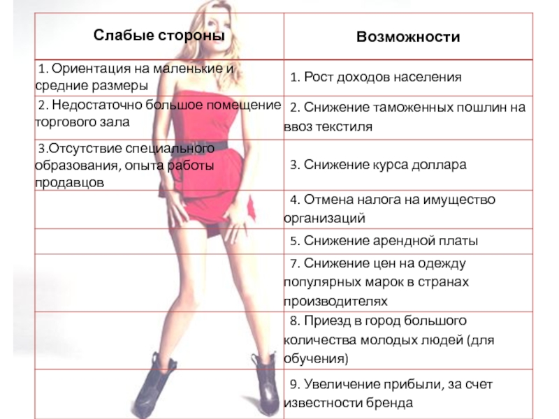 Так же активное влияние оказывает стоимость ассортимента магазина и покупательная способность покупателей .Так например, за январь-август 2012, спрос на пальто женское демисезонное увеличился на 3,7%, на джемпер для взрослых - на 1,4%, на сапоги, ботинки зимние – на 3,1%.
