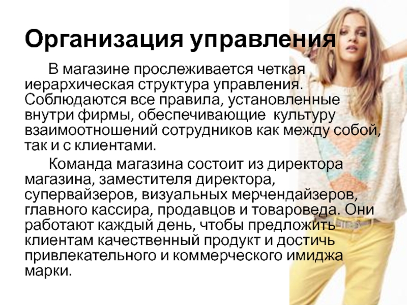 В магазине прослеживается четкая иерархическая структура управления. Соблюдаются все