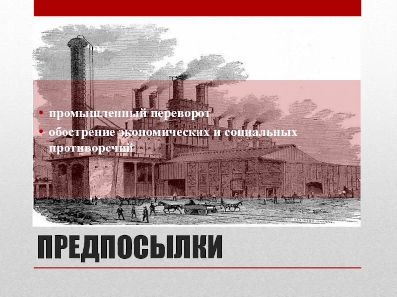 ПРЕДПОСЫЛКИпромышленный переворотобострение экономических и социальных противоречий