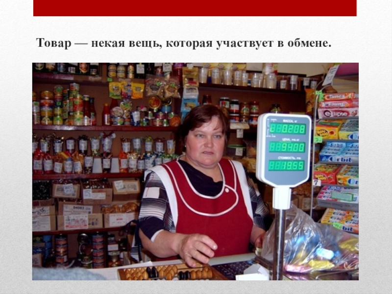 Слайд 6Товар — некая вещь, которая участвует в обмене.