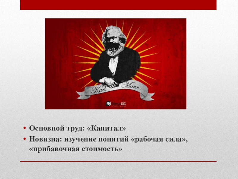 Основной труд: «Капитал»Новизна: изучение понятий «рабочая сила», «прибавочная стоимость»