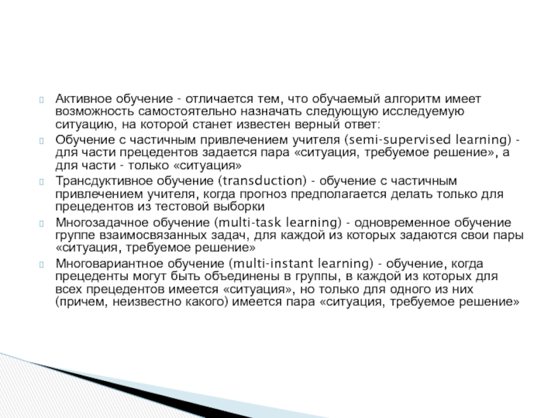 Обучение по прецедентам, или индуктивное обучение, основано на выявлении закономерностей
