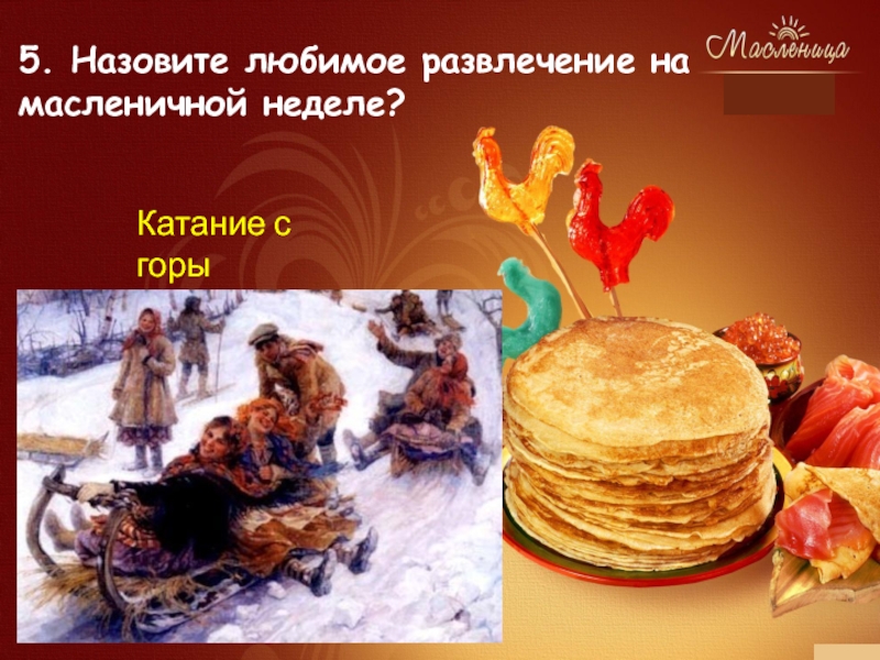 5. Назовите любимое развлечение на масленичной неделе?Катание с горы