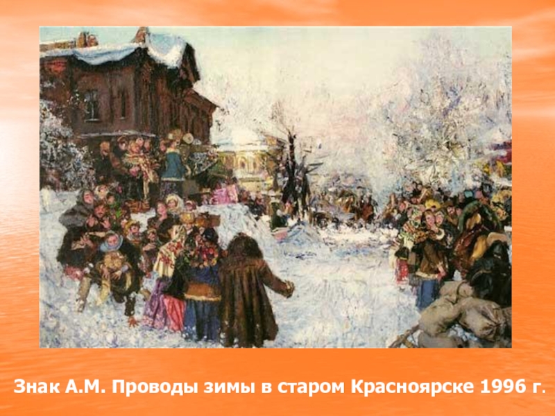 Слайд 6Знак А.М. Проводы зимы в старом Красноярске 1996 г.