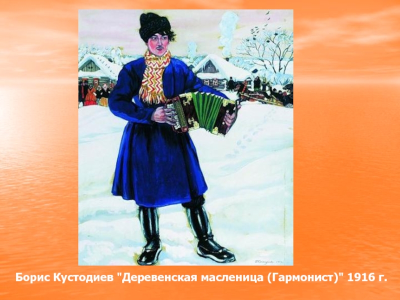Слайд 12Борис Кустодиев "Деревенская масленица (Гармонист)" 1916 г.