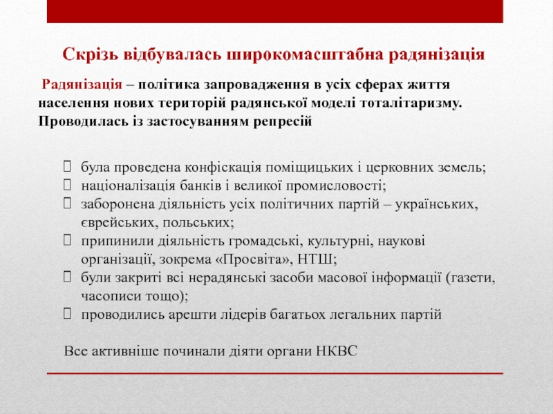 були закриті всі нерадянські засоби масової інформації (газети, часописи тощо);