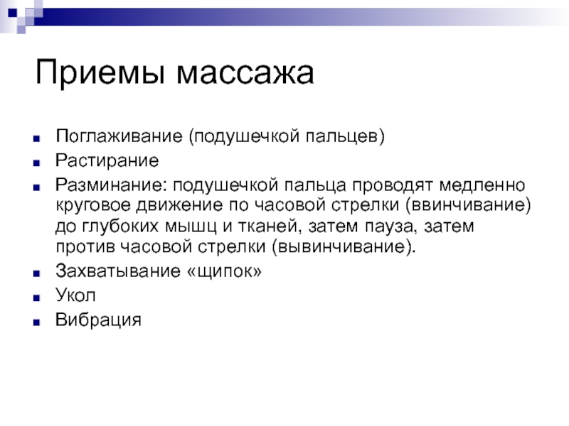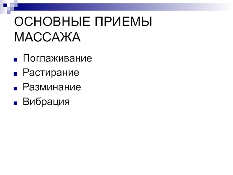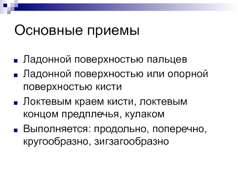 Слайд 7ОСНОВНЫЕ ПРИЕМЫ МАССАЖА