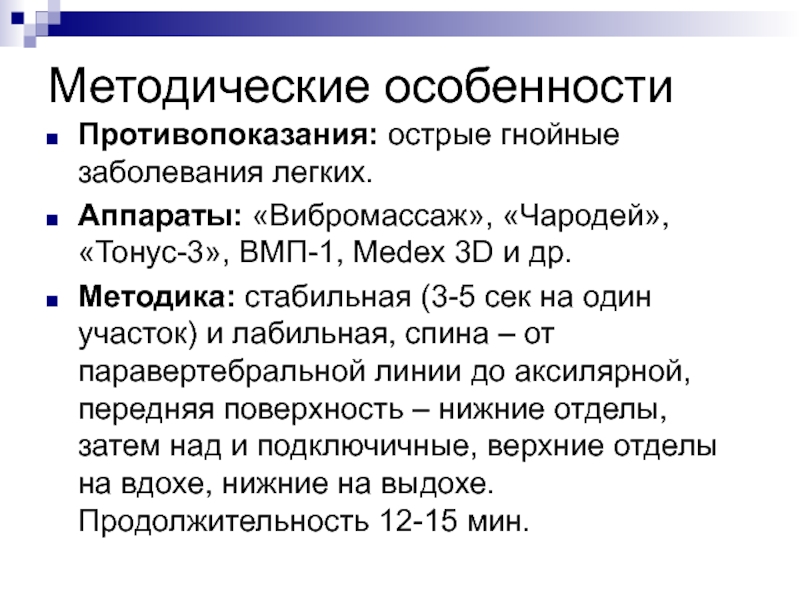 Противопоказания: острые гнойные заболевания легких.