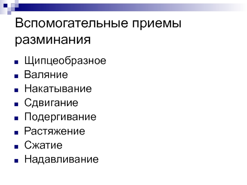 Слайд 10Вспомогательные приемы поглаживания