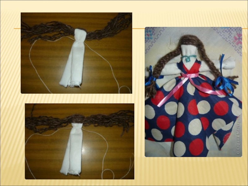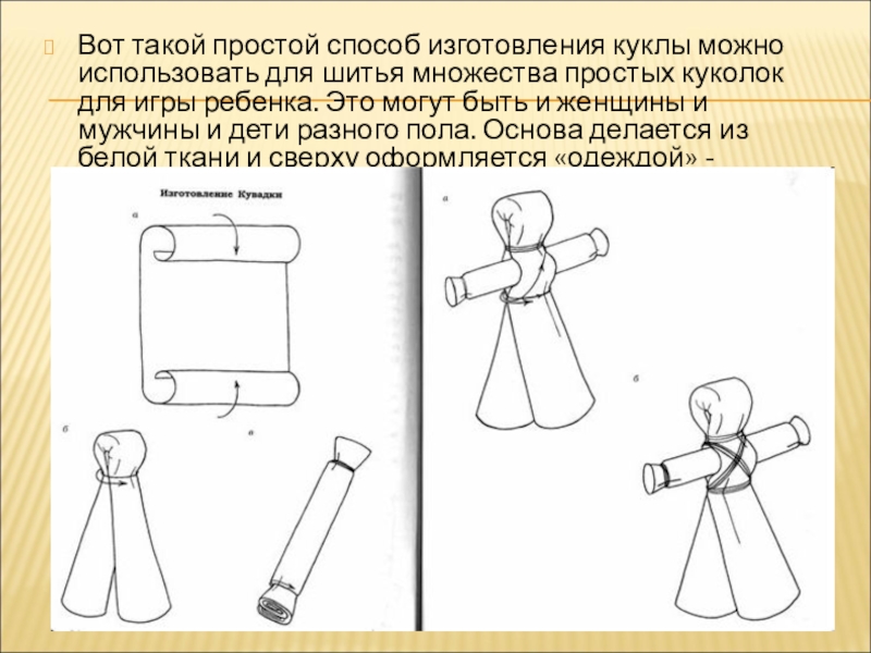 Слайд 10Вот такой простой способ изготовления куклы можно использовать для шитья