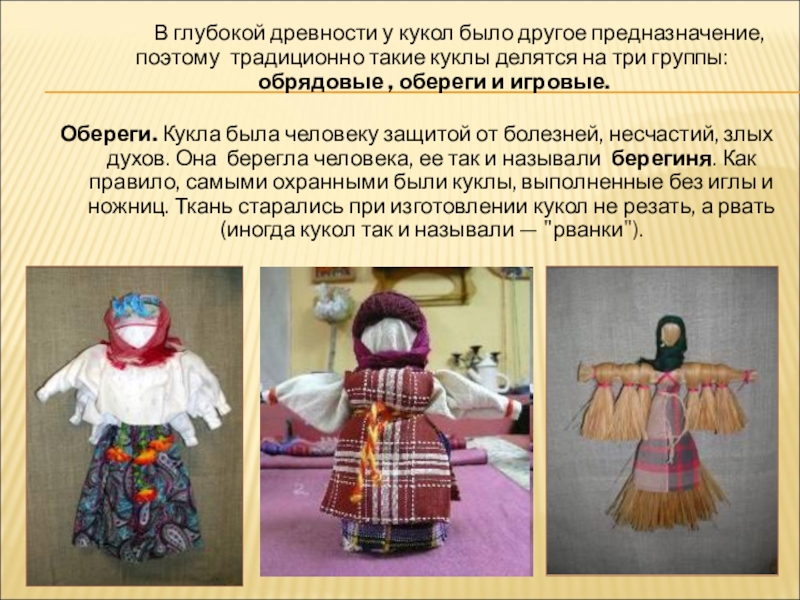 Слайд 2 В глубокой древности у кукол было другое предназначение, поэтому