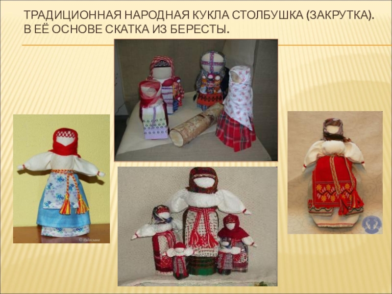 Слайд 6Традиционная народная кукла Столбушка (Закрутка). В её основе скатка из