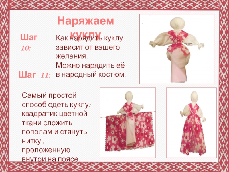 Как нарядить куклу зависит от вашего желания.