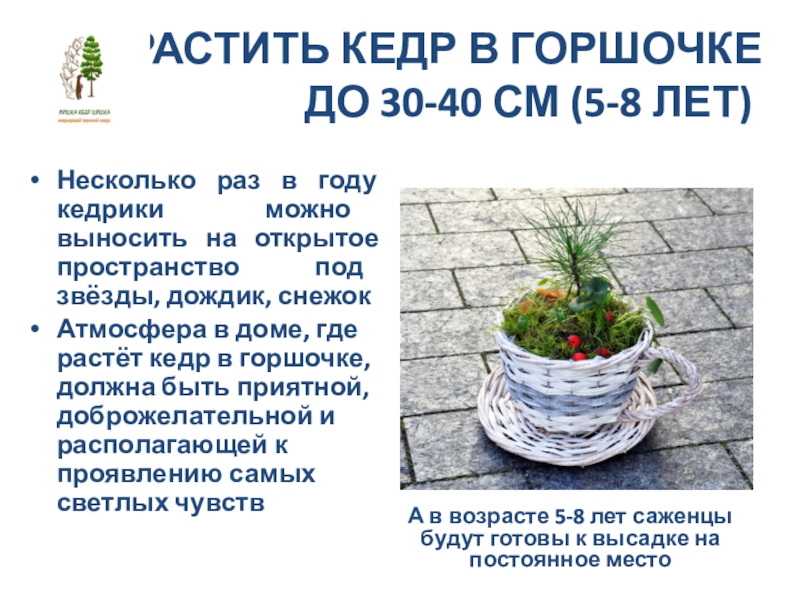 Несколько раз в году кедрики можно выносить на открытое пространство под звёзды, дождик, снежок