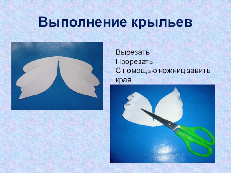 Выполнение крыльевВырезатьПрорезатьС помощью ножниц завить края