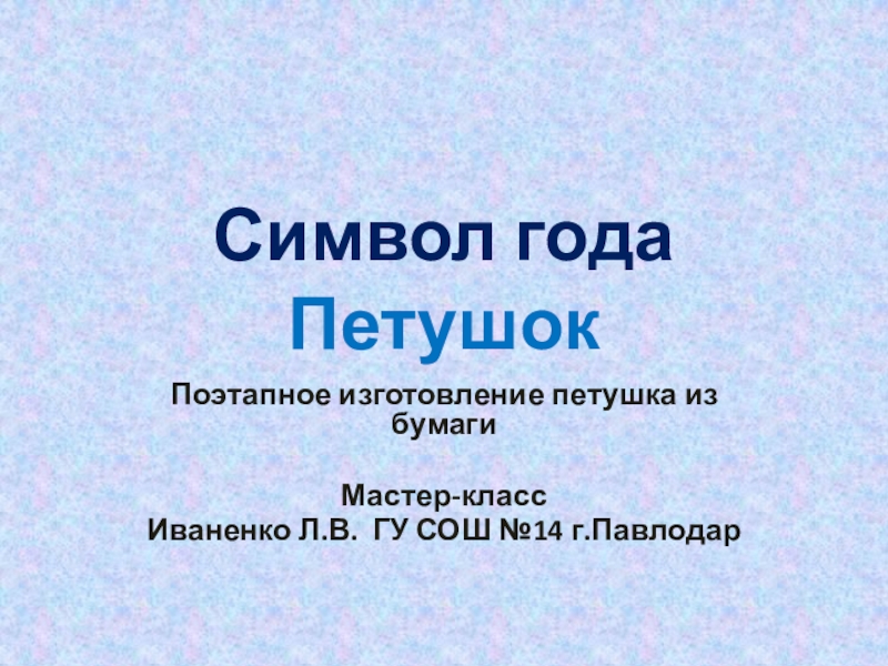 Символ года ПетушокПоэтапное изготовление петушка из бумаги Мастер-класс Иваненко Л.В. ГУ СОШ №14 г.Павлодар