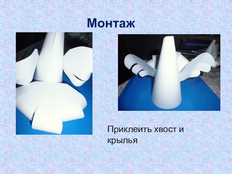 Монтаж  Приклеить хвост и крылья