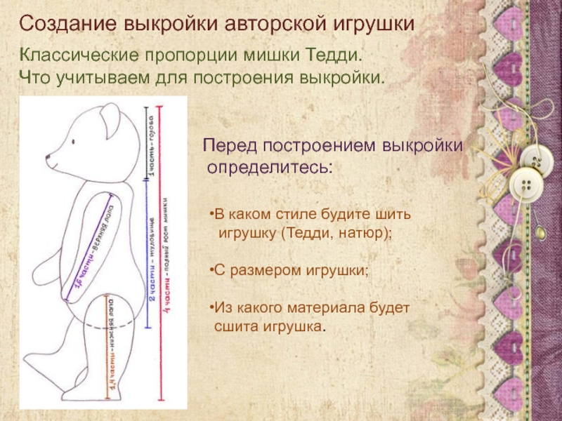 Создание выкройки авторской игрушкиКлассические пропорции мишки Тедди.Что учитываем для построения выкройки.Перед построением выкройки определитесь:В каком стиле будите