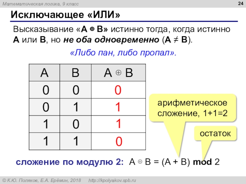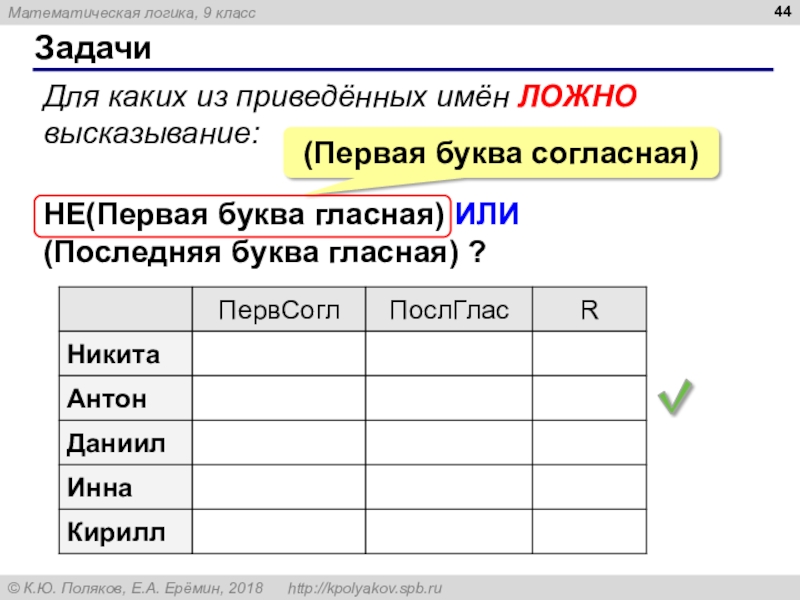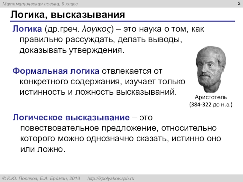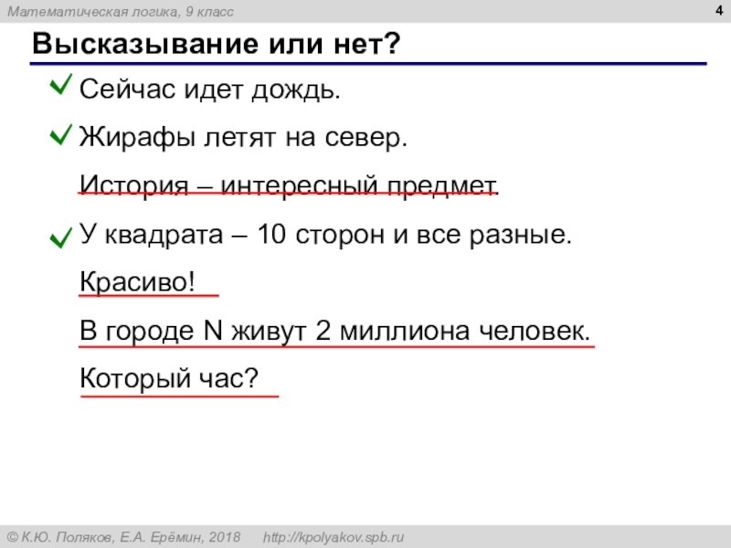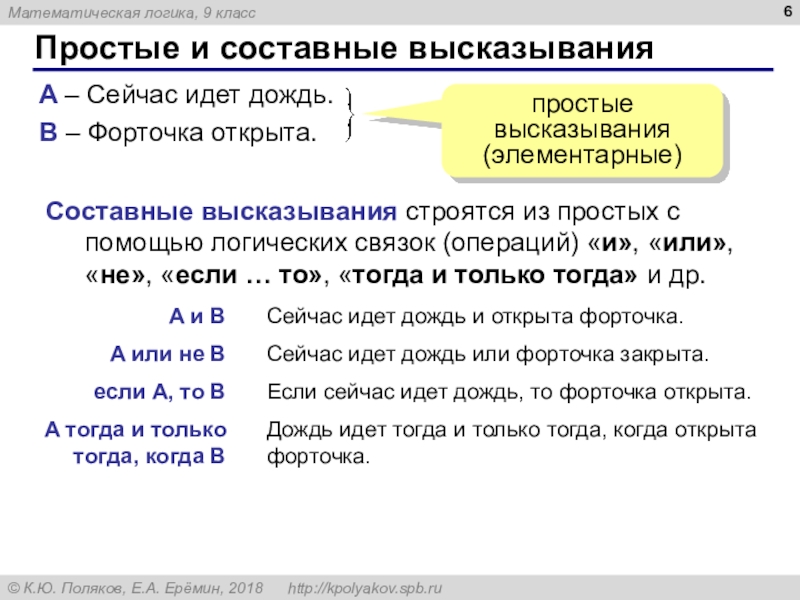 Логическое высказывание – это повествовательное предложение, относительно которого можно однозначно сказать, истинно оно или ложно.