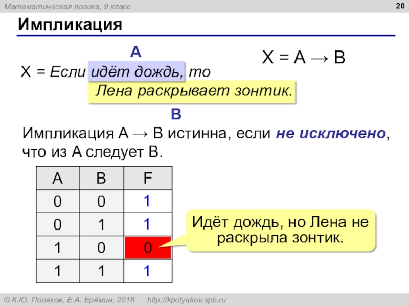Импликация A → B истинна, если не исключено, что из A следует B.