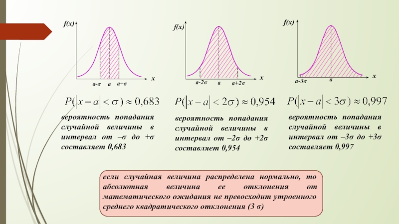 вероятность попадания случайной величины в интервал от –3s до +3s составляет 0,997
