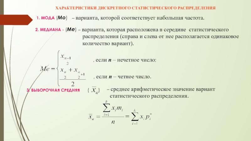 II. ДИСКРЕТНОЕ СТАТИСТИЧЕСКОЕ РАСПРЕДЕЛЕНИЕ или ВАРИАЦИОННЫЙ РЯД – совокупность всех вариант и соответствующих им частот или относительных частот.