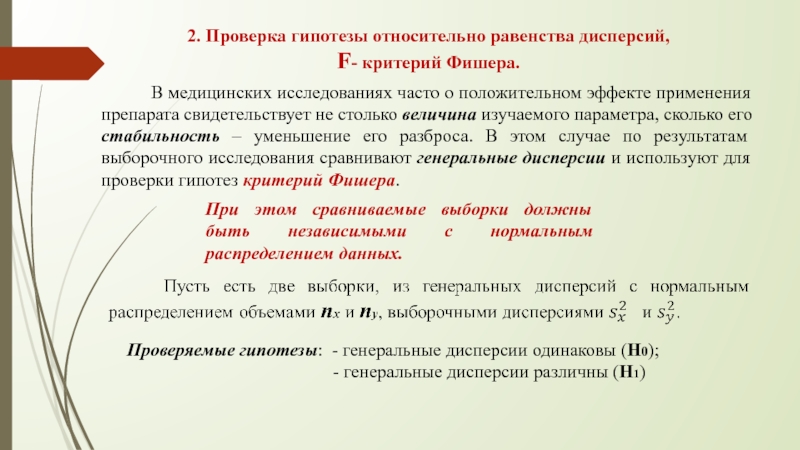 Проверяемые гипотезы: - генеральные средние одинаковы (Но –эффект