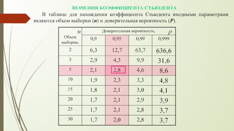 tст – коэффициент Стьюдента определяют по таблице, задавая доверительную вероятность