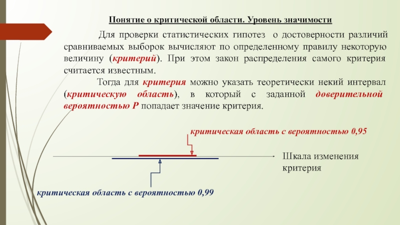 Если вычисленное экспериментально значение критерия попадает в критическую область, то принимается гипотеза Нo (отсутствие различий). В противном случае принимается гипотеза оптимиста.
