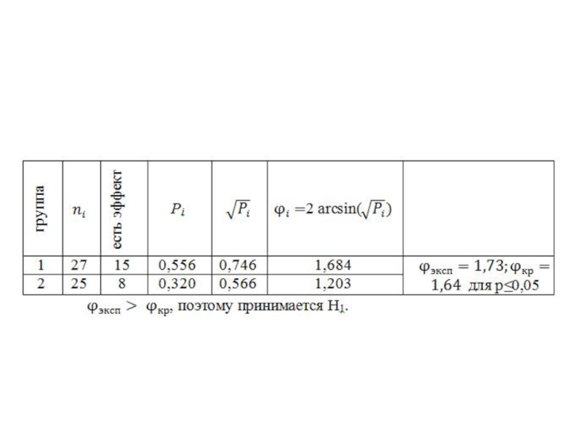 60 баллов. В первой группе из 27 человек более 60 баллов набрали 15 человек, во второй группе 8 из 25. Можно ли утверждать, что в первой группе доля повышенных оценок достоверно превышает долю во второй группе?