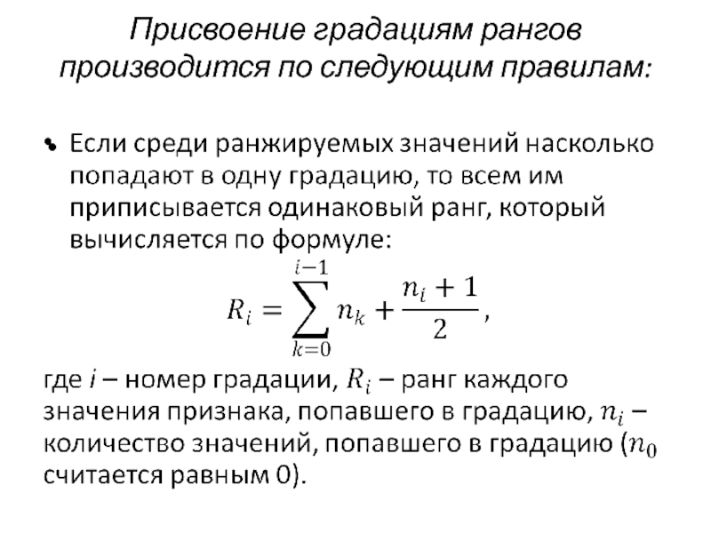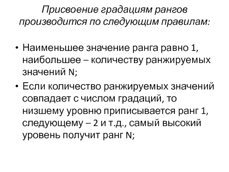 Слайд 11Присвоение градациям рангов производится по следующим правилам: