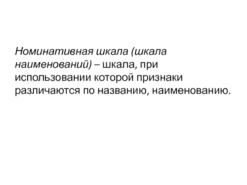 Слайд 9Номинативная шкала (шкала наименований) – шкала, при использовании которой признаки