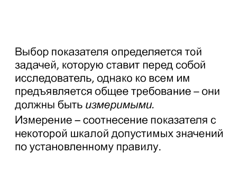 Слайд 6Выбор показателя определяется той задачей, которую ставит перед собой исследователь,