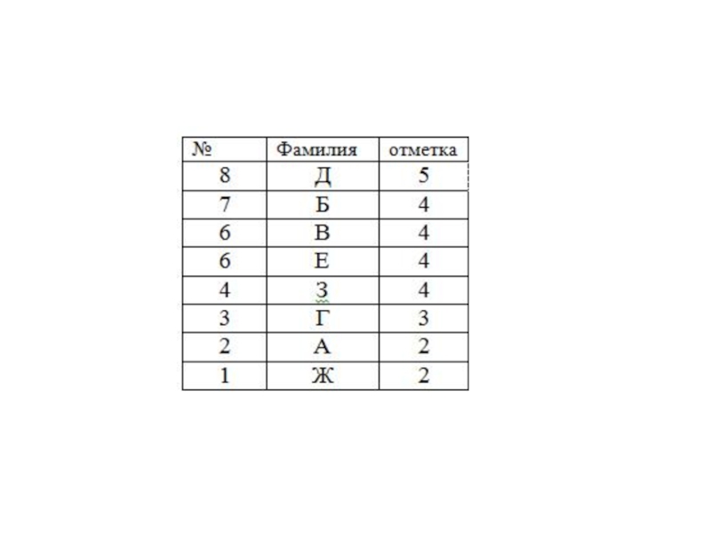 Пример: в результате проведения контрольной работы учащиеся получили отметки, которым