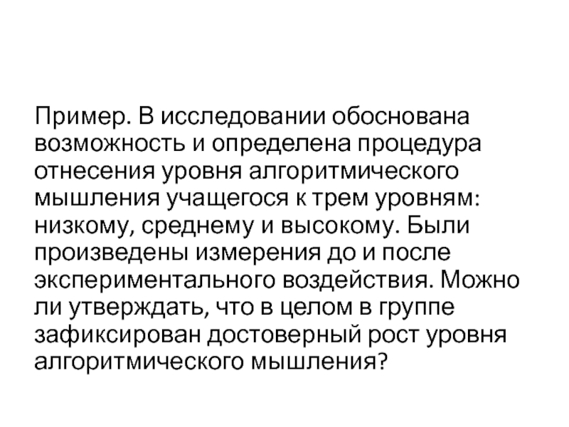 Слайд 35Пример. В исследовании обоснована возможность и определена процедура отнесения уровня