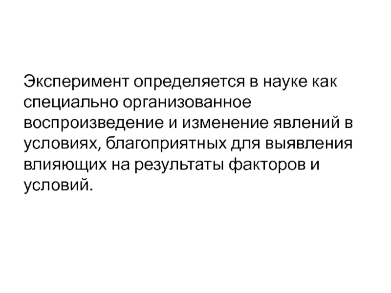 Слайд 2Эксперимент определяется в науке как специально организованное воспроизведение и изменение