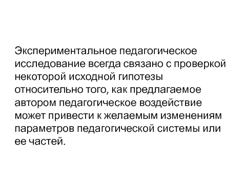 Слайд 20Экспериментальное педагогическое исследование всегда связано с проверкой некоторой исходной гипотезы