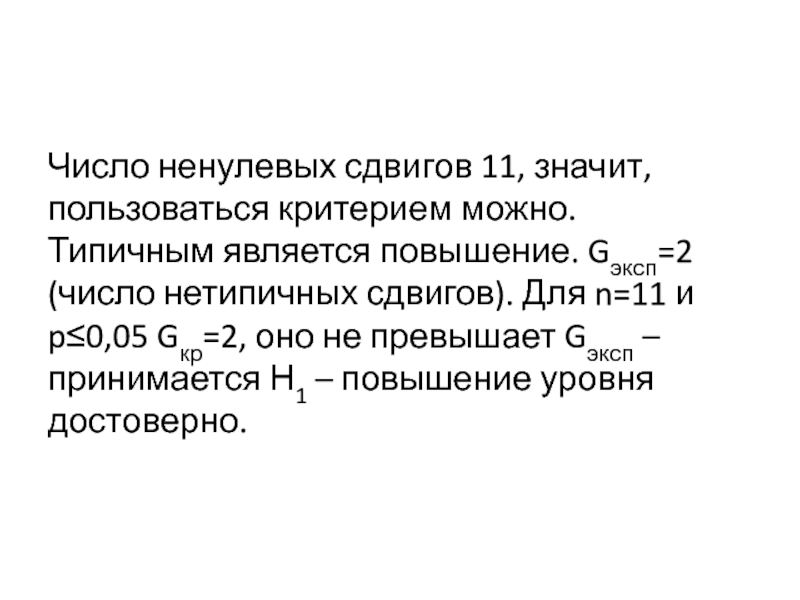 повышение. Gэксп=2 (число нетипичных сдвигов). Для n=11 и p≤0,05 Gкр=2,
