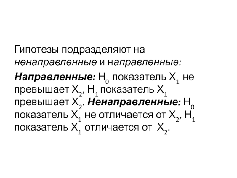 Слайд 22Гипотезы подразделяют на ненаправленные и направленные: