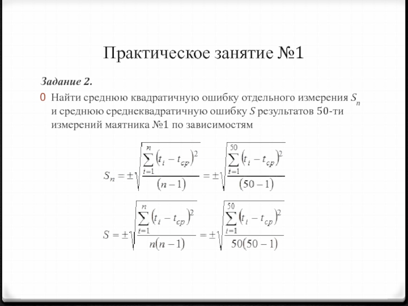 Практическое занятие №1Задание 2. Найти среднюю квадратичную ошибку отдельного измерения Sn и среднюю среднеквадратичную ошибку S результатов