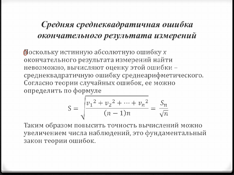 Слайд 5Средняя квадратичная ошибка отдельного измерения