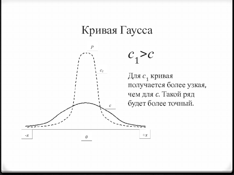 Кривая Гауссас1>сДля с1 кривая получается более узкая, чем для c. Такой ряд будет более точный.