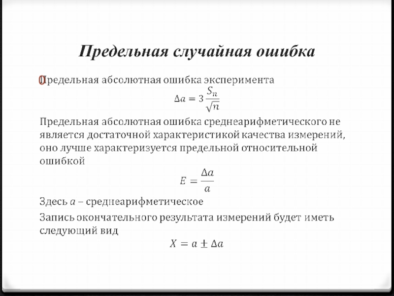 Таким образом, принимают, что для всякого рода равноточных измерений предельная случайная ошибка с вероятностью, близкой к 100 %, равна 3Sn