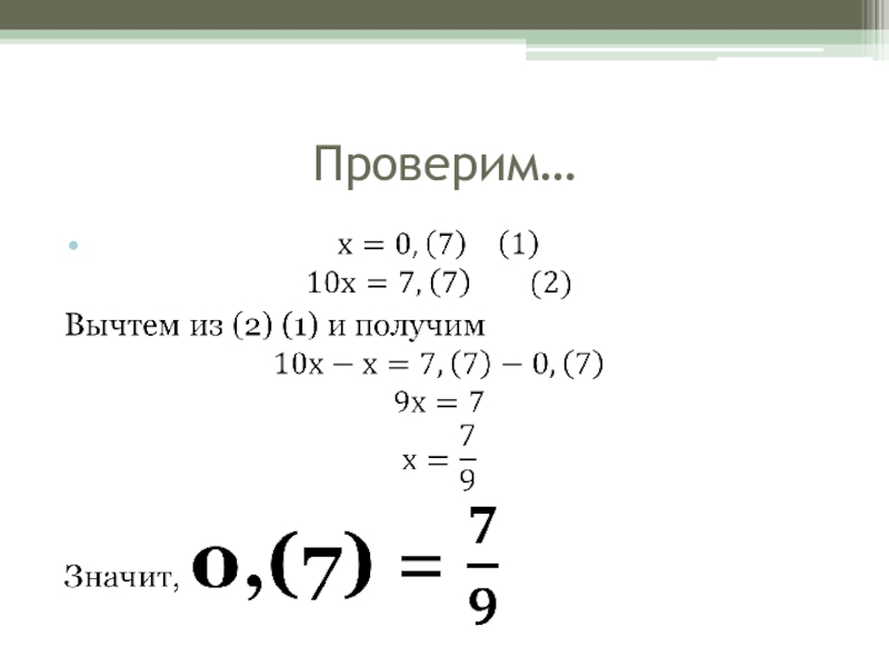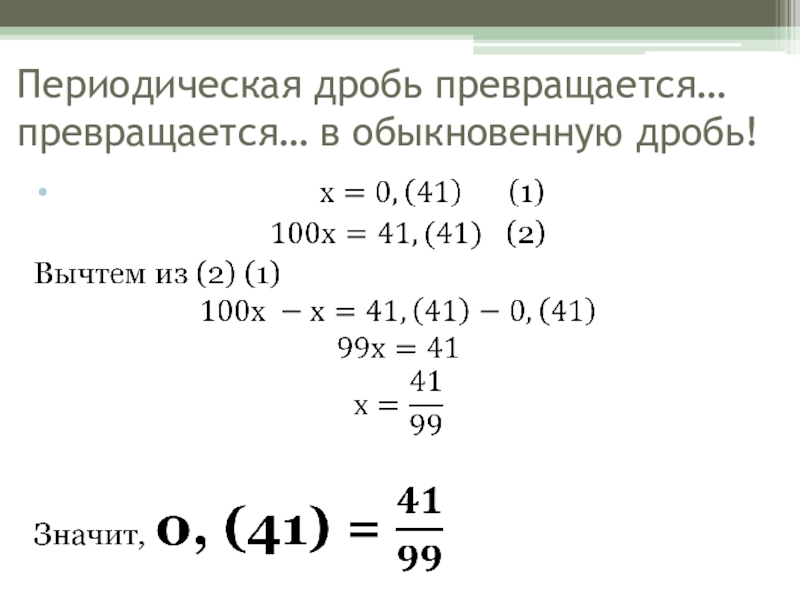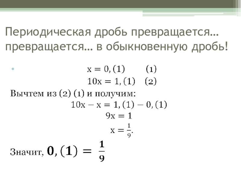 Слайд 24Периодическая дробь превращается… превращается… в обыкновенную дробь!
