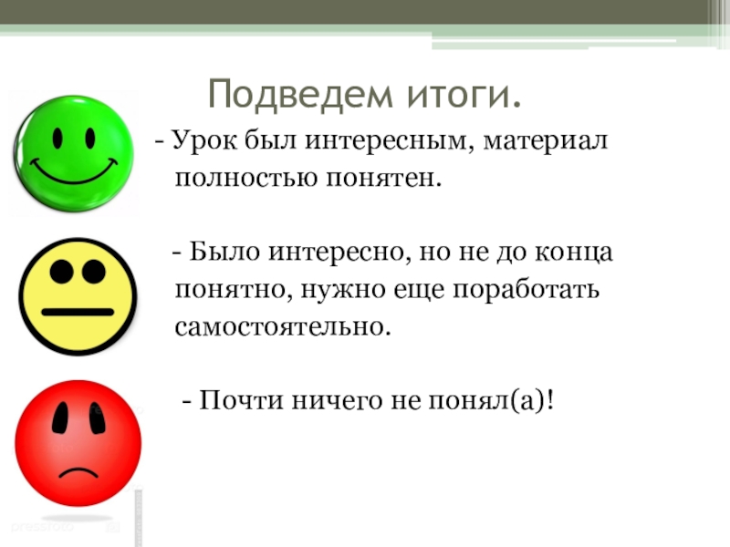 Подведем итоги.        - Урок был интересным, материал